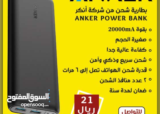بور بنك من شركة انكر بقوة 15600 اكبير تشجن الجوال من6 مرات تقريبا على حسب نوع الجهاز ذكية للاتصالات
