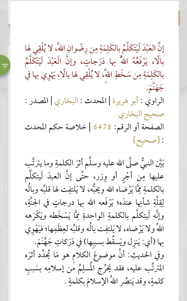 موقع الدرر الس ني ة En Twitter عن أبي ه ريرة ر ض ي الله عنه أن ر سول الله صل ى الله عليه وسل م قال إن الع بد لي تكل م بالكلمة ما ي ت ب ي ن ما فيها ي هو ي بها في النار أ بعد