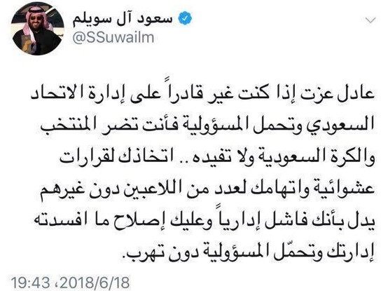جحفلي Auf Twitter عبد الكريم الجاسر من لا شيء احالوه للنيابه العامه وهذا يتعدى حدوده وينعت رئيس الاتحاد السعودي بـ الفاشل ولم يحركون ساكن الله معك يا ابو يزيد