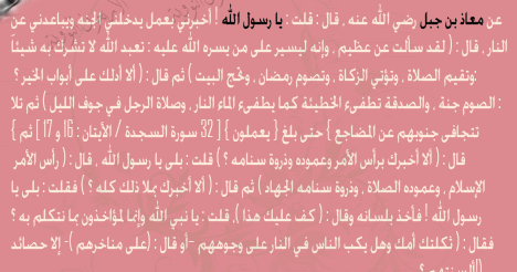 حبيبي يارسول الله 35 فائدة تربوية من حديث معاذ بن جبل رضي الله عنه قلت يارسول الله أخبرني بعمل يدخلني الجنة ويباعدني عن النار